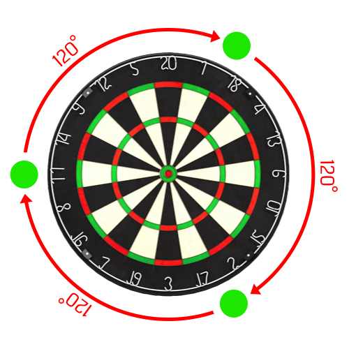 Your cameras need to be positioned 120 degrees apart for the best results when detecting the darts. There are 2 suggested layouts.