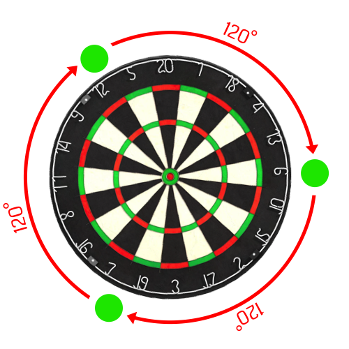 Your cameras need to be positioned 120 degrees apart for the best results when detecting the darts. There are 2 suggested layouts.